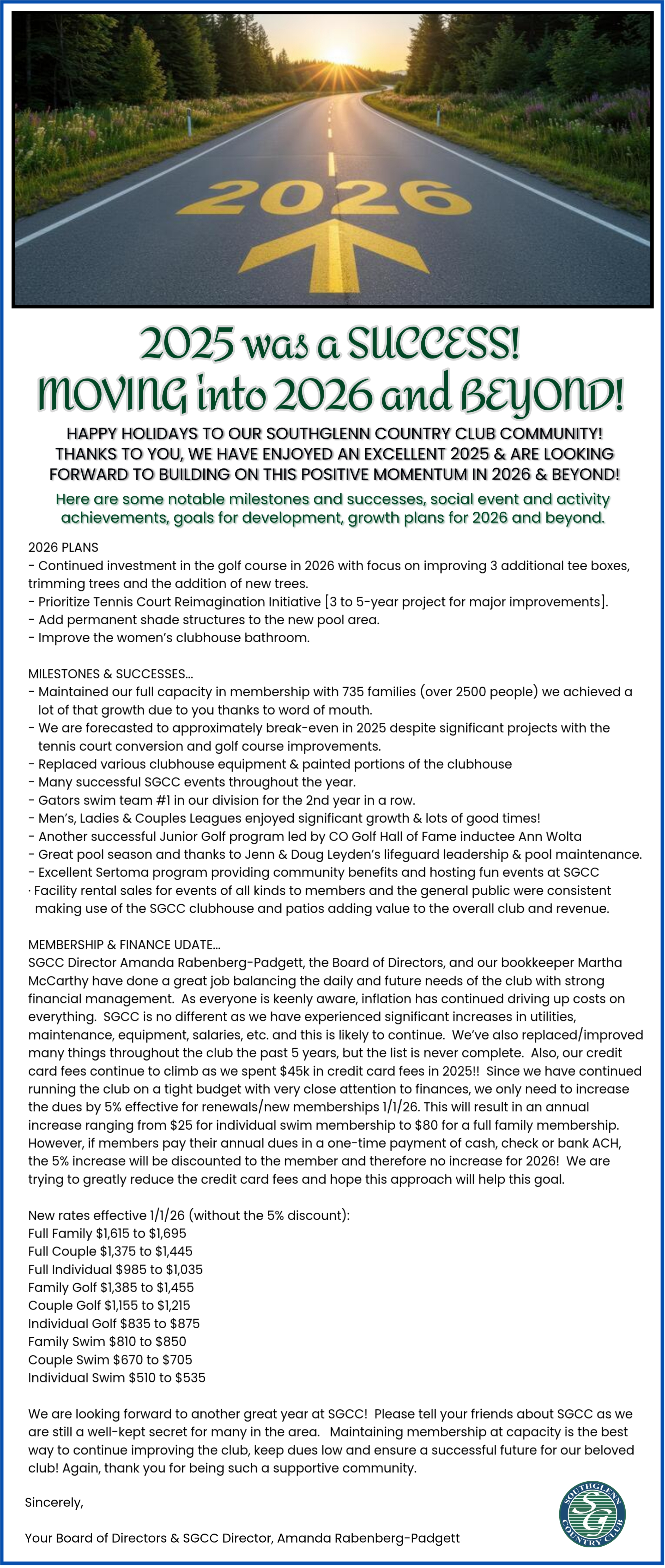 2026 Membership Pricing QUESTIONS - CONTACT THE FRONT DESK
