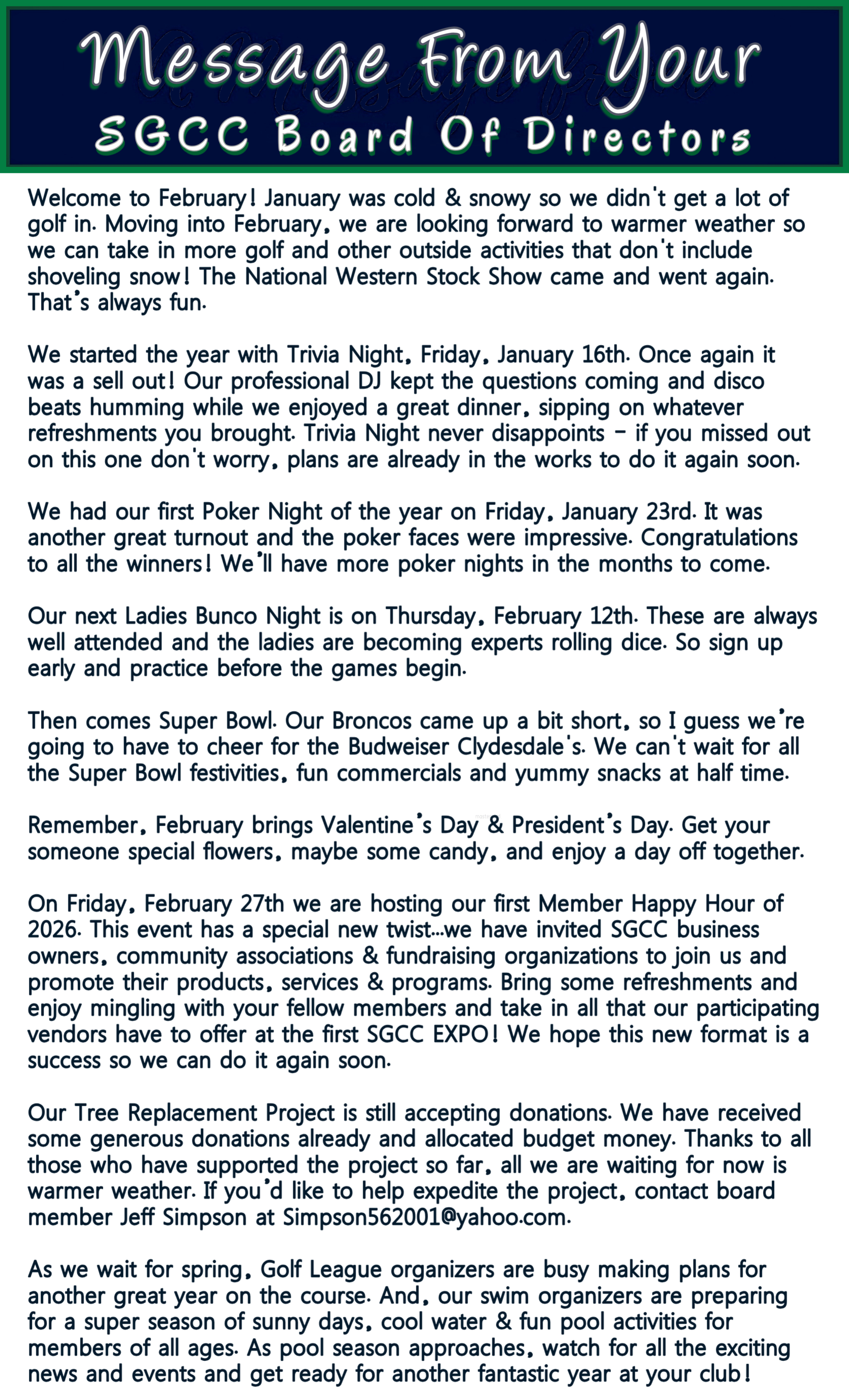 CLICK HERE FOR CLUB NEWS & MORE! QUESTIONS, CONTACT THE FRONT DESK
